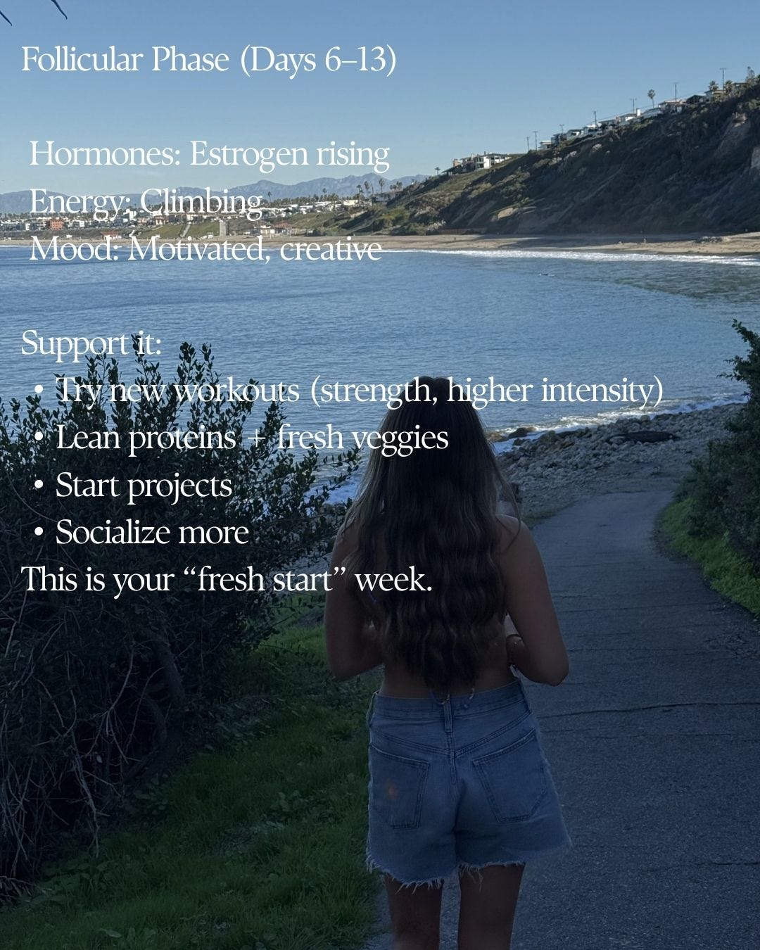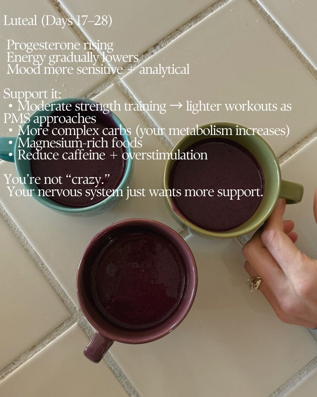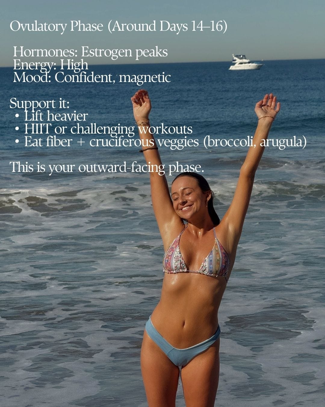Once I understood that, everything changed. I stopped trying to eat the same way, train the same way, and schedule my life the same way every week. Instead, I started working with my cycle and my energy, workouts, and overall mood became way more stable.